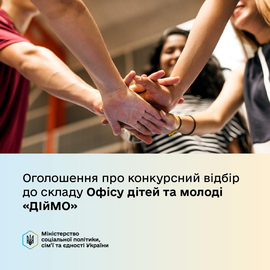 До уваги молодих людей від 14 до 35 років. Мінсоцполітики запрошує вас долучитися до ДІйМО - Офіс дітей та молоді — консультативно-дорадчого органу при Міністерстві.