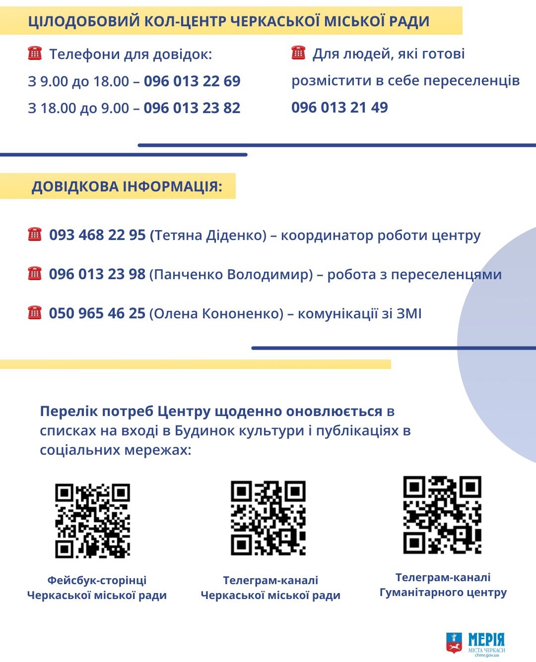 Телеграм-каналі Гуманітарного центру – https://t.me/chmr_help.