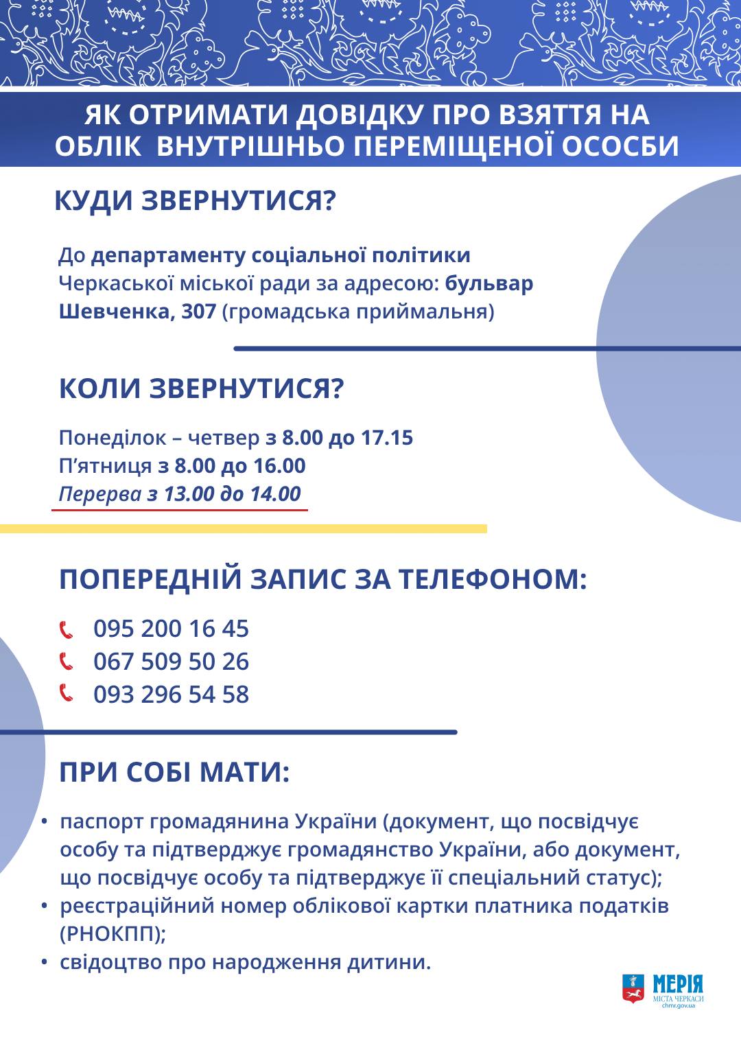 необхідно звернутися до департаменту соціальної політики Черкаської міської ради за адресою: бульвар Шевченка, 307 (громадська приймальня).