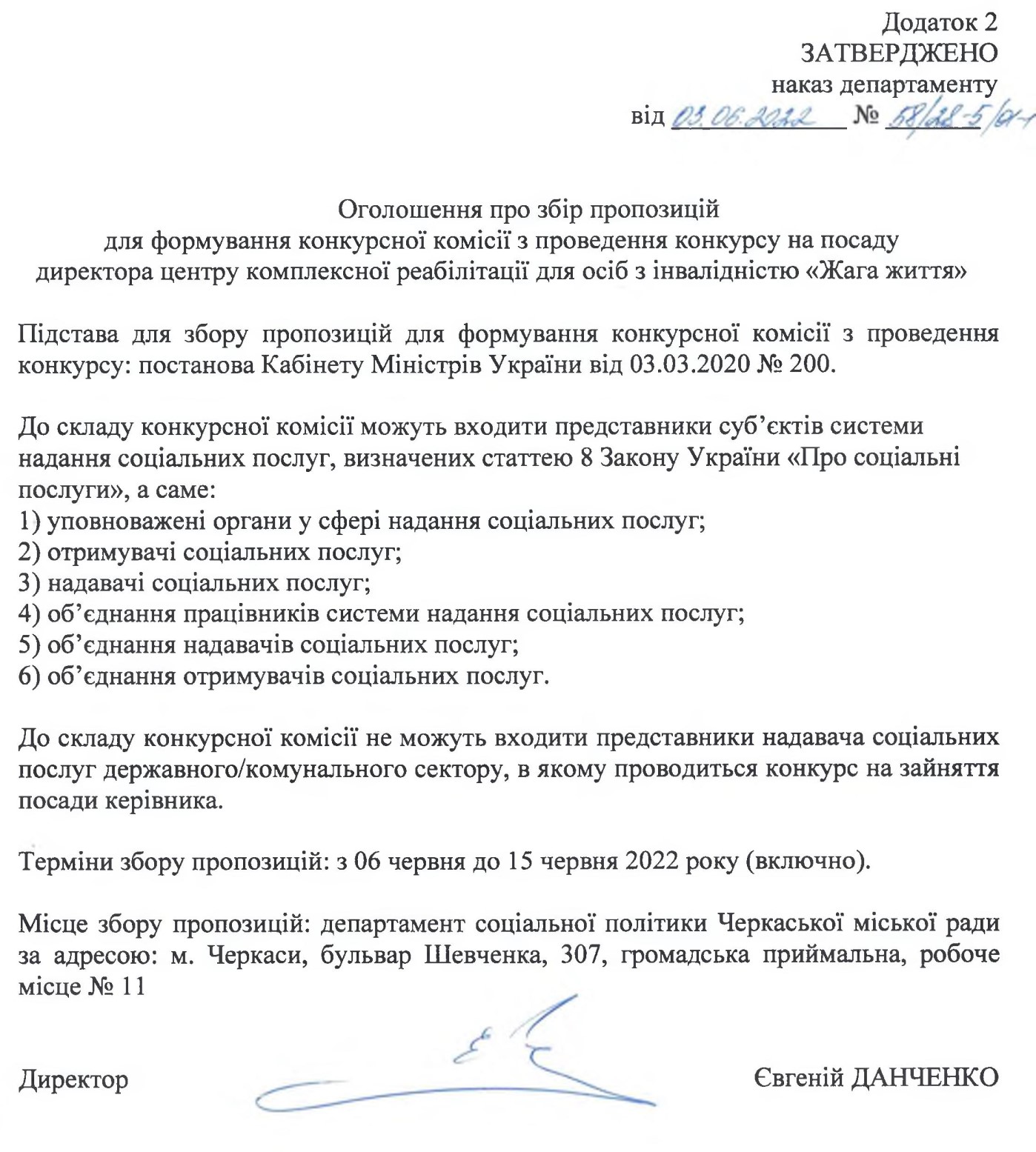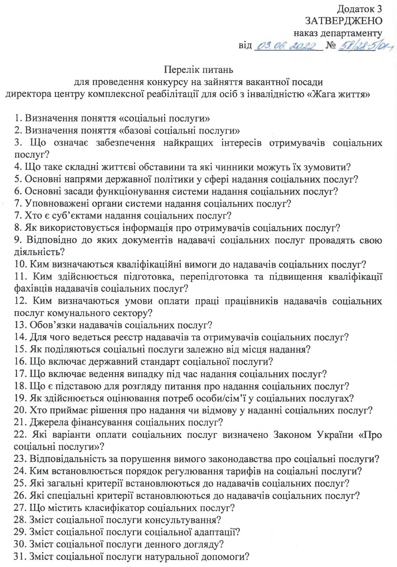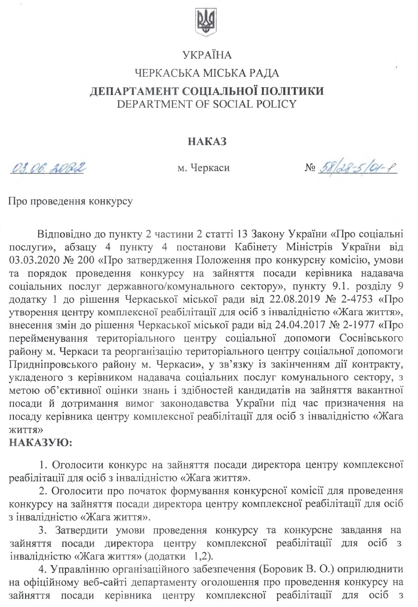 Оголошується конкурс на зайняття посади директора центру комплексної реабілітації реабілітації для осіб з інвалідністю "Жага Життя"