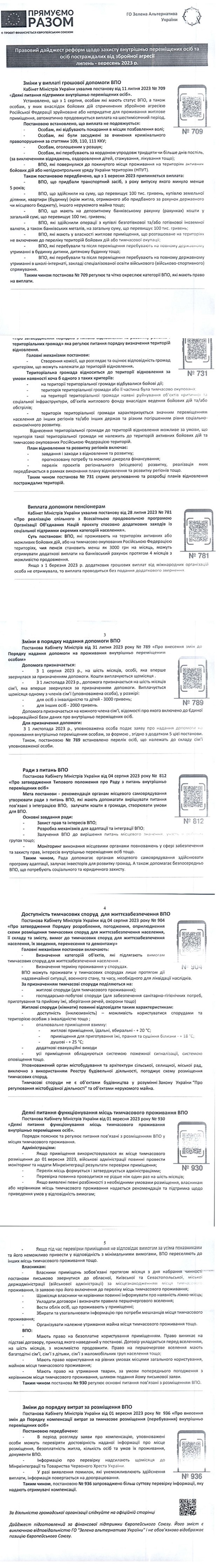Громадська організація «Зелена альтернатива України» надіслала правовий дайджест реформ щодо захисту внутрішньо переміщених осіб та осіб, постраждалих від збройної агресії за період з липня по вересень 2023 року.