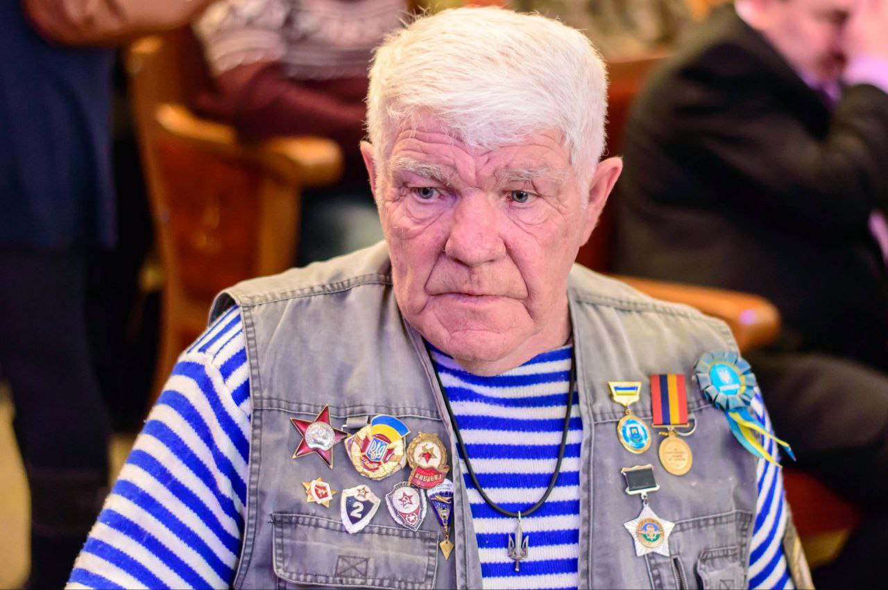 76-річний Григорій Миколайович – людина з інвалідністю, в кріслі колісному. Тільник, бушлат і берет додають колориту його постаті, а ентузіазм, бойовий дух і позитивний настрій підбадьорюють багатьох людей.